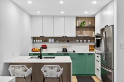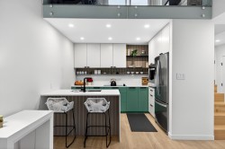 Welcome to this stunning, unique oversized 1 Bed + Loft in the heart of Grandview Woodland! Step inside this fully renovated home featuring a custom two-tone kitchen w/designer appliances and abundance of storage. The kitchen flows seamlessly through the dining & living, highlighted by vaulted ceilings and access to one of two private balconies. Spacious bedroom offers ample closet space, complemented by a luxurious bathroom featuring striking terrazzo tiles. Upstairs, a spacious loft awaits, offering the perfect flexible space for a office, media room, or guest bedroom. An ultimate oasis is waiting on your spectacular sunny, south-facing private rooftop deck, a perfect extension of your living space. Building well maintained and active strata.