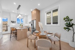 Welcome to this brand new luxurious side-by-side half duplex nestled in a prestigious neighborhood with 2-5-10 Years Waraanty. This beautifully crafted residence offers 4 bedrooms and 3.5 baths, including a one-bedroom legal suite—perfect for extended family or rental income. Designed with elegance and functionality in mind, it boasts 10-foot ceilings on the main level, a bright open-concept layout, and stunning mountain views from the master bedroom and back deck. Comfort is ensured with a heat pump and HRV system, while a spacious crawl space provides ample storage. Ideally located minutes from schools, parks, a community center, library, shopping, and SkyTrain.