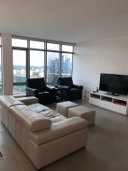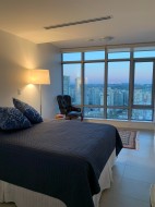This condo boasts spectacular city views and features an open-concept layout with a generous living and dining area, perfect for everyday living and entertaining. The modern kitchen is equipped with high-end Miele stainless steel appliances, an induction cooktop, granite countertops, ample cabinetry, and a large pantry for additional storage. The primary bedroom offers a luxurious ensuite with dual sinks, a separate glass-enclosed shower, and a deep soaking tub. The second bedroom is versatile, ideal for a guest room or home office. Residents enjoy a wide range of premium amenities. The Patina Club on the 8th floor includes a fully furnished lounge and a well-equipped fitness studio, both opening onto an expansive rooftop garden terrace with stunning city views. Additional building featu