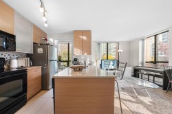 Discover elevated living in this bright fifth-floor corner unit at Yaletown Park Two. Bathed in natural light, this sophisticated one-bedroom + den residence features a thoughtfully designed open layout that blends style with everyday function. The generous den is ideal for a home office, while a bonus flex or pantry area adds valuable in-suite storage. Light-toned flooring, expansive windows, and a modern kitchen create a warm, inviting feel with lovely city views. Building amenities include a fitness centre, concierge, and party + media room. Perfectly positioned in the heart of Yaletown, just steps from top dining, shopping, cafes, and transit, this is an outstanding opportunity for end users and investors alike. Enjoy urban convenience with comfort, elegance, and long term appeal.