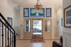 Step into a rare gem of Vancouver's history at 777 Burrard Street nestled within a beautifully preserved six-story 1914 heritage building. Lovely one bedroom suite blends the charm of yesteryear with modern elegance, offering a unique living experience in one of the city's most coveted locations. 9' ceilings immediately enhance the spaciousness of the open-plan kitchen and living area. A pretty kitchen features custom-designed cabinetry. Every detail has been meticulously crafted, from the sleek California Closets built-ins to the expansive marble bathroom. Large windows flood the spacious bedroom with natural light. Just steps from the best shops and restaurants, this well maintained, re-piped building offers the convenience of a live-in caretaker. Don't miss this exclusive chance.