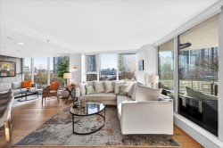 Located in the heart of Yaletown at Landmark 33, this beautifully renovated 2BR 2BA residence offers luxurous urban living with timeless elegance. The kitchen has been redesigned as the heart of the home, featuring expansive workspace and generous countertops ideal for chefs and entertaining, complete with premium S/S Fisher&Paykel appliances. The open living and dining area flows seamlessly to a large covered balcony, perfect for morning coffee, evening BBQ, with views of False Creek. Bathrooms are tastefully renovated, with the primary ensuite offering heated floors. Enjoy resort style amenities incl a spa inspired gym, the iconic H2O Club, pool,hot tub, steam rm,party and games rooms, squash court and landscaped outdoor green space.Bike room, EV and visitor parking available.