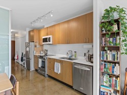 Spacious 699sqft unit with A/C on the highly desired south side of V6A in Chinatown - only $822/sqft! This modern condo features a long list of benefits - high floor with excellent privacy, flexible floor plan w large spaces, great storage including 2 hall closets, private covered balcony, expansive & bright south facing view, heat pump (!!!), spacious bathroom, 1 secured parking & large storage locker. Polished concrete floors & over height ceilings give this unit a cool, modern feel. All in a solid, well maintained concrete building with concierge and gym. Pets + rentals allowed. Super central location - you're a short walk to the best of Chinatown, False Creek & the Seawall, Olympic Village & Yaletown with a bike route outside & the Skytrain nearby. Showing by appt - reach out to view!
