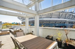 This private, corner townhome is a true modern-day retreat. Thoughtfully renovated with sleek, contemporary finishings, it exudes style and comfort in every detail. Bright and inviting, the home speaks for itself — but the outdoor spaces take it to another level. Enjoy three distinct outdoor experiences: a lush, private garden entrance; a serene patio off the primary bedroom complete with your own private hot tub; and a massive 500+ sq ft south-facing rooftop deck for sunset dinners and lively gatherings in the glow of BC Place's gorgeous lights. All this just steps from sky train, restaurants, entertainment, Rogers Arena, and boutique shops. A rare blend of city living and private sanctuary close to all the city's best offerings! OPEN SAT DEC 6TH 2-4.
