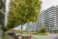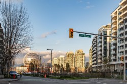 Pinnacle on the Park. This One Bedroom + Den has peek-a-boo False Creek and park views from the balcony. Open-style floorplan with stainless steel Bosch kitchen appliances and LG washer/dryer. Centrally located and has a walkscore of 98/100. Perfectly positioned in the heart of Olympic Village, this home offers unbeatable access to False Creek, the Seawall, and vibrant restaurants, cafés, and shops. Steps to Main Street-Science World SkyTrain, it’s a quick commute to downtown while enjoying a relaxed waterfront community vibe. Comes with one (RARE 220V) EV-Ready parking stall and ONE storage locker. Call Agent for viewing.