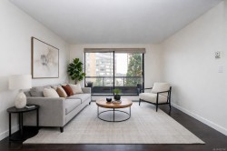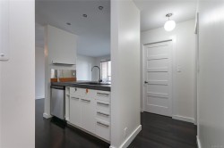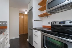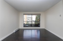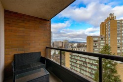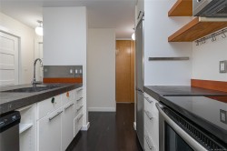 Located on the 10th floor, this one-bedroom downtown condo offers city and mountain views from a desirable north-facing exposure. The unit features a functional layout with generous built-in storage and a kitchen equipped with concrete countertops, stainless steel appliances, and modern fixtures—ready for a refresh to truly make it your own. With some TLC, this home presents an excellent opportunity to add value and customize to your taste. The steel-and-concrete Sandpiper is a well-managed, non-smoking building, ideally situated within walking distance of downtown, Market on Yates, London Drugs, and all amenities. Building amenities include an exercise room, sauna, bike storage, a common room with rooftop terrace, and the added convenience of a full-time, live-in caretaker. Rentals are permitted, along with up to two cats or one dog under 10 kg, making this a solid option for investors or owner-occupiers alike