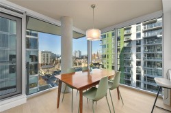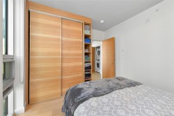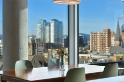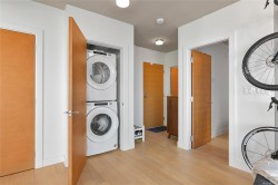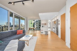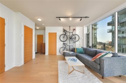Not your typical downtown condo. This one is perched in a very unique way on the 10th floor at 989 Johnson. A bright NW exposure. Walk-in and instantly be impressed by the city, mountain, and water views surrounded by natural light via massive floor to ceiling windows. At 989 Johnson, the modern and industrial design is ahead of its time. This popular floorplan maximizes your living space and is customizable to fit your lifestyle. There is plenty of kitchen storage beautifully concealed behind white high gloss millwork for a contemporary and functional interior. Luxury appliances, white quartz countertops, exposed concrete accents, light oak engineered hardwood floors, and solid wood closet organizers are just a few of the premier finishes in this home. One underground secure parking stall and storage locker included. Pet friendly, rentals allowed, and all the amenities you need a short stroll away.