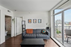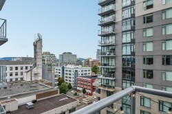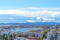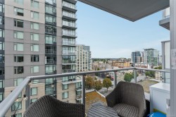 New Price! Vacant Possession available February 1st. Yates on Yates was built by Chard Developments with luxury finishes and luxury amenities. This quiet 11th floor sleek and stylish home offers expansive windows inviting in an abundance of natural light while framing dynamic city views. The designer kitchen impresses with integrated Fisher & Paykel appliances, custom cabinetry, quartz countertops with matching backsplash. The inviting living area flows to a private covered balcony—perfect for enjoying the skyskape and urban backdrop. The spacious bedroom features an oversized walk-in closet, while the elegant bathroom includes in-floor heating. Additional highlights: in-suite laundry and an A/C heat pump, designated bike storage, storage locker and a pet wash station. A stunning wrap around rooftop patio with gardens, children's play area, BBQ's & lounge area. Just steps from the Inner Harbour, top restaurants, cafés, and boutique shopping—experience the best of city living!