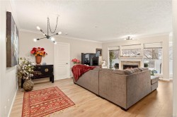 Vibrant James Bay! Bright and spacious 1,180 sq.ft. southwest-facing 2 bed/2 bath condo in the popular Polo Pacific, overlooking beautifully landscaped courtyard gardens. This well-designed layout features newer flooring and excellent use of space throughout. The kitchen offers newer appliances, an eating area, and access to a sunny balcony. The open living/dining area features a cozy gas fireplace. The generous primary suite includes a large walk-in closet, ensuite, and a versatile lounge area ideal for a home office. Upgrades include the newer appliances, flooring, toilets, and more. Amenities include in-suite laundry, secure underground parking, two guest suites, games room, EV charging, on-site caretaker, and additional parking to rent.Walk to shops, cafés, restaurants, Fisherman’s Wharf, the waterfront, Inner Harbour, and downtown. Well-maintained building with a proactive strata. New roof and the Poly-B replacement underway. Quick possession available, this is not ground floor