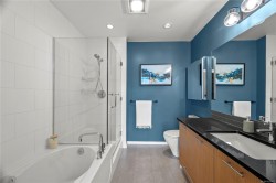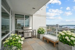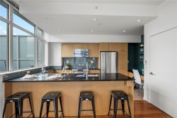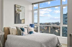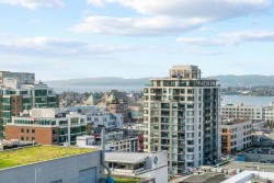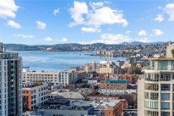 Beautiful OCEAN, Olympic Mountain, and City views from this sub Penthouse! Floor-to-ceiling windows and sunny south exposure fill the home with light. Spectacular views sunrise to sunset from your kitchen, living room or massive (460 sqft)wrap around deck with gas and water hookups. Corner suite with open layout featuring: 2 balconies (virtually staged), warm hardwood floors, 9' ceilings, bathrooms with in-floor heating, stylish kitchen with granite countertops, ss appliances, and bar nook. The spacious Primary boasts walkthrough double closets and spa-inspired ensuite. 2 dogs/2 cats or 1 of each allowed. Highly secure building with: a well managed strata, rooftop patio, media room, underground parking, bike storage, and storage locker. Steps to Inner Harbour, markets, cafes, Victoria culture scene, gyms/yoga studios, world-class dining + easy access to nature trails, beaches/boat launches and direct buses to Uvic. Priced to sell and ready to impress. Reach out today to book a viewing!