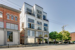 Stylish and unique, this two-level loft at Chatham Studio Lofts offers downtown living at its finest. Featuring soaring 16-foot ceilings, TWO balconies, and a bright corner layout with south-facing exposure, this unit is filled with natural light and character. The open-concept design includes a gas fireplace, stainless steel appliances, quartz countertops, and a loft bedroom with a large walk-in closet. In-suite laundry, secure underground parking (leased), and a storage locker are all included. There is a stunning rooftop patio with 360° views of the city and the ocean. Just steps from restaurants, cafés, breweries, shops, and the Inner Harbour. This is true urban living in one of the city’s most vibrant areas.