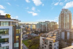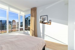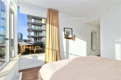 Discover elevated,sustainable living in this stunning 2 bed, 2 bath west-facing corner unit at Dockside Green Victoria’s award-winning community by Bosa. Bright open layout w/ premium finishes suits a modern harbourside life. Massive 800 sqft terrace expands space—no extra strata fees—perfect for entertaining,relaxing & enjoying mountain + ocean views w/ great afternoon sun.Eco-friendly radiant heating pairs with advanced ERV for fresh air & balanced temp/humidity year-round.Gourmet kitchen boasts Italian Stosa cabinetry, gas cooktop, Grohe premium fixtures, plus black solid walnut coffee station & entertainment unit. Includes Level 2 EV charging & storage locker behind parking stall. Third-floor unit offers ground-level privacy with easy walk-up access. Walkable Vic West:steps to Galloping Goose Trail,Songhees Walkway, cafes,shops - a quick walk to downtown & highway access. Amenities:rooftop terrace w/ BBQs & firepit,gym,lounge, pet spa, & secure bike storage—ideal for active living.
