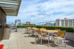 Ultra bright and modern south-facing condo in Escher, a top tier steel and concrete building—offering superior soundproofing, durability, and peace of mind. The open-concept layout is ideal for comfortable living and entertaining, complete with a large kitchen island with seating for three, generous storage, and stainless steel appliances. A flexible tech nook or pantry adds versatility, while the primary bedroom features a spacious walk-in closet. Arguably the best secured underground parking spot that the building has to offer, secured bike storage, and also a common dog washing station. Enjoy access to a stunning rooftop terrace with panoramic views of Downtown, Fairfield, and the Olympic Mountains—featuring lounge space and BBQ area. With a gym and park just across the street and shopping, dining, and entertainment just steps away, this is the perfect home base for urban living.