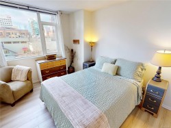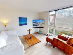 Live in the heart of Downtown Victoria at The Metropolitan! This 1 bed + den, 1 bath SW corner unit, renovated in 2024, offers 756 sq ft of bright, spacious living. The kitchen shines with new cabinets, butcher block counters and SS appliances. The generous living room boasts new floors & floor-to-ceiling windows, flooding the space with natural light. The primary bedroom is well sized, paired with a fresh, modern 4 pc bath. The versatile den works well as a second bedroom, guest room, nursery, office, or creative studio. Enjoy in-suite laundry and a SW-facing balcony to unwind on. Amenities include secure u/g parking, bike storage & a separate storage locker. The steel & concrete, pet-friendly, professionally managed building has recent upgrades including a full water piping replacement & new elevators. New carpet to be installed and hall painting scheduled in the coming months. Quiet yet central location, steps to markets, cafes, dining & major bus routes. Ideal home or investment!