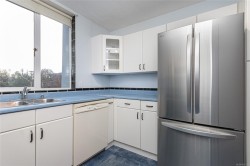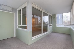 Welcome to Sutton Place West, a well constructed steel & concrete building in Victoria’s vibrant, walkable Harris Green area! This spacious 2 BR, 2 bath corner unit offers over 1,100 sq ft of thoughtfully designed interior living space, with the added privacy of only four units per floor! The open living & dining areas extend to a 140 sq ft enclosed balcony, ideal for year round use & easy access to the storage room. The bright kitchen has a newer fridge & stove and a great layout for the cook! The generous primary bedroom measures 15x11 & is complemented by a versatile 2nd bedroom, perfect for guests, home office or a den. A smart bathroom design features a walk-in shower between the main bath & ensuite, maximizing funcitonality. Additional highlights include in suite laundry, secure underground parking & a pet-friendly policy (dog up to 8 kg). Walk to work, cafés, shopping & the waterfront. This is a well managed strata with a healthy contingency fund. Quick possession is possible!