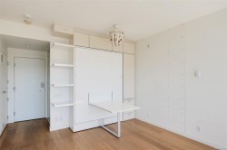 Live the Janion Lifestyle – South-Facing Waterfront Bachelor!Welcome to urban luxury in the newest section of the iconic Janion building. This rare, south-facing bachelor is one of the largest and best-laid-out units available—offering unbeatable views of the Inner Harbour and downtown through expansive windows and your own private balcony. Enjoy a sleek, modern kitchen with quartz counters, quality cabinetry, and a premium built-in appliance package. A clever Murphy bed transforms into a dining or worktable, maximizing space and style. Building perks include kayak launch, bike storage, rooftop patio with BBQ & kitchen, gym, and direct beach access. Walk to everything! Opportunities like this are rare—don’t miss your chance to own the best bachelor layout in the building!