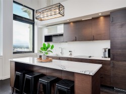Here is your opportunity to own a piece of Victoria’s history at the Iconic "HUDSON". This BRIGHT 2 BED, 2 BATH WEST FACING loft condo boasts open concept, modern design w/17 ft. ceilings & oversized windows that offer Sunset, Ocean, City & Mountain views. This 4th floor condo features engineered hardwood floors, Geothermal heating & cooling, in-suite laundry, Stainless Steel appliances, Quartz countertops & CUSTOM ISLAND ideal for entertaining! Main level is complete with a bedroom w/sliding glass doors & 3-piece bathroom. Upstairs you will find the loft style primary bedroom & 5-piece ensuite w/heated floors, double vanity, soaker tub and walk-in shower. Rentals and pets allowed. Amenities include secure underground parking, storage locker, BONUS Guest suite, expansive 14,000sqft ROOF TOP PATIO w/lounge chairs, BBQ’s & incredible views! Steps to restaurants, shopping all in the Conde Nast Traveler "WORLD #1 SMALL CITY" - VICTORIA!