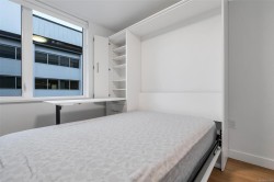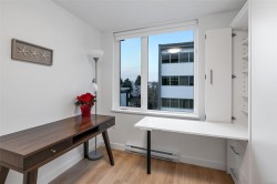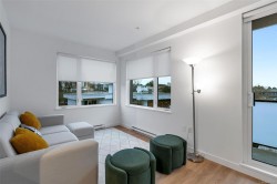 Step into contemporary living at Haven, a boutique development by award-winning Chard Developments. This like-new, southeast corner 2bed, 2bath home is filled with abundant natural light and offers a thoughtfully designed layout with separated bedrooms for enhanced privacy.Inside, enjoy 8'9" ceilings, sleek flat-panel cabinetry, stainless steel appliances, and a solid surface countertop complemented by a stylish porcelain tile backsplash. Durable, wood-look wide-plank vinyl flooring flows throughout the bright, open-concept living space. The second bedroom features custom built-in Murphy bed and desk, maximizing flexibility for guests, a home office, or everyday living.Additional highlights include in-suite laundry, roller blinds, secure underground parking with a designated EV charger (one of only a few in the building), and a separate storage locker. Enjoy an unbeatable walkable lifestyle just steps to Fernwood Village, Victoria Downtown.