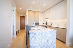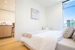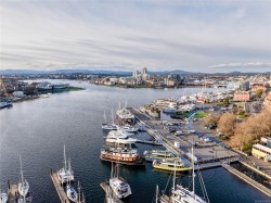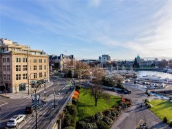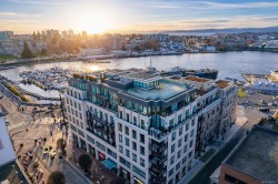 The Customs House is one of Victoria’s most sought-after luxury condo residences, ideally located between the Inner Harbour and the vibrant Old Town district. This elegant 1-bedroom, 1-bat home features a bright, open-concept layout with floor-to-ceiling windows that fill the space with natural light. The contemporary kitchen offers premium integrated appliances, a gas cooktop, stone countertops, sleek cabinetry and a waterfall island perfect for entertaining. Warm wood flooring and refined finishes create a modern, inviting atmosphere throughout. The bedroom provides a peaceful retreat with ample closet space, while the spa-inspired bathroom features clean lines and quality materials. In-suite laundry adds everyday convenience. Residents enjoy first-class amenities including a fitness centre, sauna and steam room. Steps from cafés, dining, shopping and Inner Harbour, this home is ideal for professionals, investors, or refined downtown living.