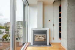 Welcome to unit 512 at the highly sought after Mosaic building. Located on the West side of the building to minimize traffic noises while appreciating stunning sunsets over the city. The charming hard wood floor is a beautiful contrast warming up the space. Open concept living including a full kitchen, gas fireplace and Murphy bed. There is a small juliet balcony that would be perfect to add a bar top to enjoy meals or a morning coffee while looking out over downtown Victoria. The bathroom is spacious with slate flooring and custom tile work. Located in the upper Fort District only minutes to downtown, Cook Street Village, the oceanfront and conveniently on major bus routes. In a safe area of town, you will have no concerns wandering through the adorable shops, bakeries, restaurants and more. Separate storage and a bike room, lots of street parking available for guests. Call today for your private tour of this charming studio home. The building is zoned for live/work life!