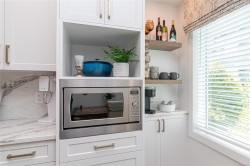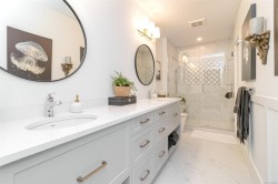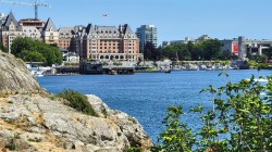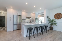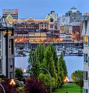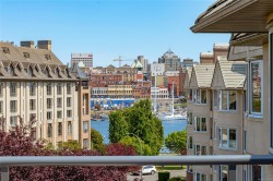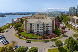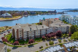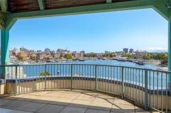 Stunning top-floor corner unit offering a serene peek-a-boo water view and a complete 2023 designer transformation. Stripped to the studs and meticulously rebuilt, with PERMITS, this residence offers a rare turnkey opportunity to bypass renovation costs and delays. The open-concept interior features custom cabinetry, quartz counters, wide-plank flooring, and a 9ft kitchen peninsula perfect for entertaining, complete with a wine bar and pantry.Enjoy a primary suite with a walk-in closet, private deck access for morning coffee, and a spa-like ensuite with an 8ft double vanity. High-end comforts include a natural gas fireplace with cast stone mantel and a new heat/AC pump. Situated in a well-managed building with secure parking and a rooftop deck, you are mere steps from the Songhees Walkway and an 8-minute stroll to downtown. Why spend months renovating when you can move into this immaculate, west-coast-styled masterpiece today? Exceptional value for a designer home of this caliber.