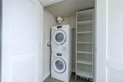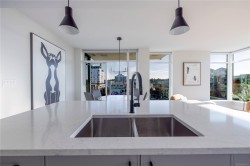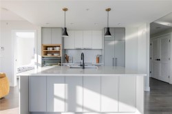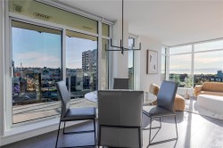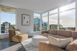 Welcome to this stunning southeast corner suite in The Legato-a spacious 2-bedroom, 2-bathroom home offering 971 sq.ft. of modern living with breathtaking mountain, ocean, and city views. Flooded with natural light through floor-to-ceiling windows, this open-concept layout features high-end appliances by Fisher & Paykel and Miele, custom-built cabinets, an integrated fridge & dishwasher, high-grade quartz countertops & backsplash, & an oversized island with storage. The primary bedroom has a walk-through closet leading to a spa-like ensuite with extra storage in the custom millwork and double sink. A second bedroom, tucked privately away, is steps from a full bath with a deep soaker tub. Built in 2018, The Legato includes secured car and bike parking plus dedicated storage, a gym, social lounge, and outdoor courtyard with communal BBQ. With no rental restrictions and pet-friendly policies, this home offers style, comfort, and flexibility in the heart of the city.