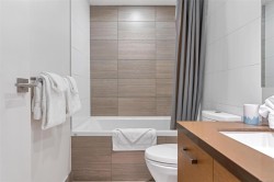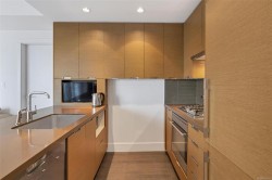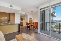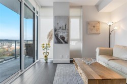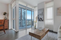 Supreme Residence for a Modern Lifestyle--This is the life at The Promontory! Discover the experiences of cozy condo living with the stunning views of Ocean, Mountain and City. This 1 Bed and 1 bath residence boosts a great size of living spaces for a single, couple or even a family to enjoy the lifestyle in one of the best condominium communities. Open concept Floor Plan offers a stylish Kitchen equipped with gas stove, integrated refrigerator, tiled backsplash and peninsula island w/waterfall countertop. Floor-to-Ceiling windows truly enhance the brightness of the space and enjoying the views on the covered wrap-around balcony is timeless. Unit comes with in-suite laundry, 1 parking&Storage locker. Building offers bike storage, owner's lounge with kitchen, fitness centre and concierge. Strata fee includes gas, heating, water and more. Mins to waterfront walkway, restaurants, Recreation and Westside Village Shopping Centre. Find your Perfect Fit at this Urban Retreat!