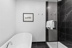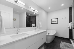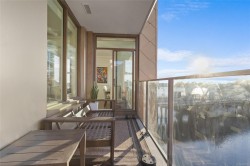 Welcome to your new home at The Pearl. Set along the waterfront in Victoria’s vibrant Old Town with the Blue Bridge as its neighbour, this stunning 2-bedroom + den residence blends modern design with everyday livability. Thoughtfully designed, the open-concept layout features 9’ ceilings, expansive windows, and a light-filled interior finished with quartz countertops, soft-close cabinetry, premium appliances, and custom built-ins that elevate both style and function. Two beautifully finished bathrooms add a spa-like touch, while the flexible den is perfect for a home office or guest space. Enjoy serene outlooks by day and glowing city views by night, featuring the iconic Johnson Street Bridge, inner harbour, and Olympic Mountains. Residents enjoy access to a social lounge, gym, and an inviting lobby—this showcases waterfront living that is sophisticated, stylish, and refined.