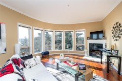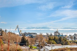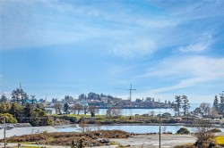 Luxury living in Admirals Landing best unit! SW corner penthouse 2 bed 2 bath OUTSTANDING panoramic water mountain forest city views and outlooks. This unit is on the market for the first time EVER since built in 2008. Modern upgrades throughout by award winning builders in a popular award-winning complex! Gourmet kitchen with granite counter tops, eating bar, pantry plus custom maple cabinets with SS appliances. The living room has a dynamic curved wall of windows overlooking wooded wonderland and ocean plus a feature corner fireplace. This is top floor corner unit with big sunny balcony secure underground parking and storage. Cherry wood wide plank flooring in all principal rooms. Large master suite with spa like ensuite. Everything is close, all amenities, nature parks, walking/ bike trails, golf course, seaside beaches, lakes, downtown and transportation. View will remain as seen!
