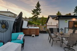 A rare luxury oceanfront offering in coveted Price Bay. This fully updated high-bank home showcases breathtaking views of Cole Island and the Olympic Mountains with 150+ ft of private waterfront on a .25-acre lot. The main level features 3 beds/2 baths, an elegant open kitchen/dining area, vaulted-ceiling living room with gas fireplace, and a stunning wrap-around oceanfront deck featuring a brand new hot tub. Upgrades include a new roof, full electrical rewire, new heat pump, new deck and rails, and heated bathroom floors for added comfort. The lower level offers a spacious 1 bed/1 bath area easily convertible to a separate suite, complete with private entrance, patio, and manicured yard ideal for guests or rental potential. A detached garage, private dock, and generous storage complete this exceptional property. Just 15 minutes to Downtown Victoria and the Westshore, and steps to the Galloping Goose Trail. A rare chance to own an elevated and timeless West Coast oceanfront sanctuary.