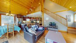 Beautiful Cabin in Koocanusa Landing –Wardner, BC! This 4-bedroom, 3-bathroom retreat offers quality finishings, thoughtful design, and relaxed living in one of the East Kootenay’s most desirable recreational communities. Featuring vaulted ceilings, tongue & groove pine accents, and a mix of hardwood, tile, and carpet throughout. Enjoy solid wood doors throughout, a spacious main floor bedroom, large welcoming foyer, and a kitchen with stainless steel appliances. The upper-level primary suite includes a deep soaker tub — perfect for unwinding after a day outdoors and loft area perfect for an office space. A cozy wood-burning fireplace with fan system distributes heat to the walkout basement. Each level includes a full 4-piece bathroom, and the lower level features a large Rec room, 2 additional bedrooms, excellent storage space — including a utility/laundry room and a walk out basement. The home includes 200-amp service, a high-efficiency furnace with central A/C, and is wired for a hot tub. The detached garage is wired with a large overhead door, ready for your finishing touch. Park your boat just steps away and enjoy the seasonal lake access, a dock in the main lake, nearby fire pit, & electric retractable south facing awning that covers the whole deck. Just a short drive from top ski resorts like Kimberley & Fernie, plus top golf courses, it's the perfect base for year-round fun. This turnkey property is fully furnished & move-in ready. Your perfect getaway awaits!