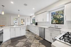 Welcome home to this stunning two-story property, a perfect blend of modern upgrades and enduring charm, set on a generous, private lot.The lush, mature landscaping and underground irrigation create an immediate, welcoming presence. Step inside to a home designed for lifestyle, featuring 4 spacious bedrooms and 3 full bathrooms. The luxurious primary suite is a private retreat, and a truly expansive walk-in closet that provides incredible storage. The heart of the home is the bright, open, and updated kitchen, a dream for both cooking and entertaining. It boasts elegant quartz countertops, double ovens, and a charming herb window. The living space flows seamlessly to the magnificent outdoor living area, perfect for year-round enjoyment. Extend the season with Infrared Heaters, and enjoy easy grilling with a dedicated Gas BBQ line. The space is complete with a built-in speaker system, a spacious entertainment patio, and a new 2025 hot tub for ultimate relaxation. This property offers unique flexibility, including a fully self-contained,690 sq. ft. suite that is separate from the main living area. Hobbyists and business owners will appreciate the space: a detached workshop with power, plus an additional storage building equipped with power, water, and heat, offering endless possibilities for creative or practical pursuits. Rest easy knowing all major systems have been recently updated: Hot Water Tank (2022),Furnace & A/C (2023),Kitchen Renovation (2019), New Garage Door (2025)