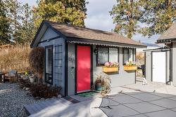Pride of ownership is evident in this meticulously renovated residence, where modern updates and timeless design come together seamlessly. Thoughtfully curated for exceptional indoor and outdoor living, this contemporary home offers 2 bedrooms plus a den, vaulted ceilings, and a chef-inspired kitchen with quartz countertops, stainless steel appliances, and a pot filler. A sunken great room with gas fireplace and southwest-facing windows creates a warm, light-filled living space. The primary bedroom features a well-appointed ensuite with double sinks, quartz countertops, and a walk-in closet with custom-built-ins. A spacious second bedroom and versatile den or home office complete the main home. The private backyard backs onto Glen Canyon Park and showcases manicured lawns, mature landscaping, an in-ground pool, and patio—ideal for relaxing or entertaining. A bonus pool cabana offers flexible use as a gym, studio, or home office. Completing the property is a fully self-contained, legal one-bedroom carriage home with kitchen, great room, laundry, and private bedroom and bathroom, thoughtfully positioned to maximize privacy. Located on a quiet cul-de-sac, just steps from shopping, schools, and hiking trails.