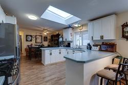 Inside, you’ll find attractive laminate flooring and a bright, inviting layout enhanced by a skylight that fills the home with natural light. The kitchen features stainless steel appliances, including a gas stove, making it both stylish and functional. The spacious floor plan offers generous living areas and two full bathrooms for added convenience.
