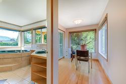Outside, enjoy a large deck, hot tub under the trees, and an oversized garage with parking for five or more vehicles, including space for RV and boat.