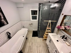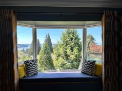 South facing with Ocean, City, Stanley Park and UBC VIEWS, 5 bedrooms 5 bathrooms 2 kitchens family home on a 1/3 acre pie shaped land in fabulous Upper Ambleside. Solid home with an extensive renovation in 2021. Separated entry for 2 bed 2 bath legal suite, w/laundry. Freshly painted inside and out. Large front yards. Backyard backs on highway. The home is located below the highway, nicely avoiding most of the noise which travels up. Close to top schools, walk to Ridgeview Elementary and West Vancouver Secondary in minutes.
