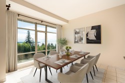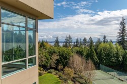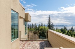 Remarkable 3,406 sq.ft. south-facing corner 1/2 duplex in gated Deer Ridge Estates w/ breathtaking water & city views. Partially renovated in 2025 w/ new hardwood floors, fresh paint & A/C. Features floor-to-ceiling windows, vaulted ceilings, skylights & 2 fireplaces. Main lvl has luxury primary suite w/ spa-like ensuite & WIC, elegant living/dining, chef’s kitchen w/ granite countertop overlooking “Monet Garden” & courtyard. Below main: 3 bdrms, 5-pc bath, laundry w/ storage. Finished bsmt: flex/entertain room, full bath, workshop & storage. 10 min drive to Cypress Ski, top Caulfeild Elem, 5-min walk to Mulgrave & Collingwood. Transit at gate; Cypress Village nearby.