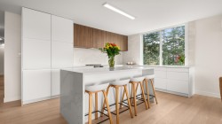 Imagine waking up to Mountain View's and then enjoying your morning coffee looking out over the ocean, Stanley Park, and the Lionsgate Bridge. This newly renovated three bedroom unit offers almost 1600 ft.2 of living space and is one of only two units per floor in this boutique strata building, Le Marquis. With a brand new kitchen featuring integrated appliances and high-end wood finishes the mid-century beginnings of this strata have been brought into the 21st-century through both character and luxury. There are two parking spaces, one in the underground, Parkade and another just off the parking ramp with a private garage door. Conveniently located only steps to Ambleside Beach, the seawall and many great restaurants.