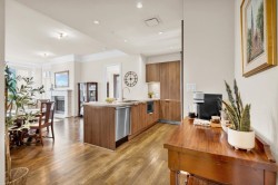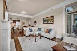 A rare sub-penthouse at Water’s Edge, this ~1,450 sq. ft. residence is one of the few large-format homes in the building. Offering 2 bedrooms plus a generous den (ideal as a third bedroom), the open-concept layout is enhanced by soaring 12-ft ceilings and floor-to-ceiling windows that flood the home with natural light. Bright south-facing exposure, two spacious decks, and oak herringbone hardwood floors elevate the living experience. Thoughtful features include an oversized laundry room, 2.5 bathrooms, two parking stalls, and one storage locker. Set directly on the Capilano River, enjoy exceptional trail access to Ambleside, Dundarave, and Park Royal, with quick bridge access and downtown connectivity. An exceptional high-end West Vancouver home combining scale, light, and location.