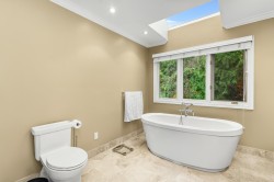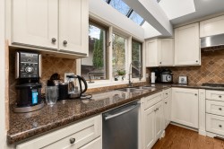 Exceptional family home, tastefully renovated in 2006, offering approx. 3,500 sqft across three levels. The traditional layout includes 4 well-appointed bedrooms upstairs, highlighted by a luxurious primary suite with a walk-in closet and elegant ensuite. Main level features a welcoming foyer, formal living and dining rooms with large windows, rich hardwood and slate flooring, a gourmet island kitchen with breakfast bar, adjoining eating area, family room with coffered ceilings, fireplace and media centre, plus a private office, rec room, and oversized double garage. French doors lead to a beautifully landscaped 1/3 acre with serene patios and lush gardens. Walk to West Bay School, McKechnie Park, and Dundarave.