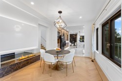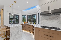 Recently renovated to first class standards, this 6-bedroom family home sits on a quiet cul-de-sac steps from beaches, trails and parks, The main level offers a custom kitchen, spacious living and dining areas, a family room and an office overlooking the garden, plus a large deck with mountain views for effortless entertaining. Upstairs are 4 bedrooms, including an impressive primary suite with a private balcony and luxe ensuite. The lower level, with 10-ft ceilings, features 2 additional bedrooms, a living room, recreation room and a gym. A level lawn and landscaped garden create a serene outdoor setting. A pathway leads directly to Rockridge and Caulfeild Village. Renovation quality throughout is exceptional.