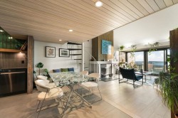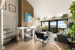 STUNNING Fully Renovated 1045 sqft PENTHOUSE on 2 levels at Panorama Village. This Spacious 1 Bedroom & Loft(2nd Bedroom/office), 1 Bathrm Skyhome offers the most commanding unobstructed panoramic ocean views from Mt. Baker to Vancouver Island. Using the finest materials from slate countertops, European tiles & fixtures, wide plank Oak Flrs, radiant heated stone flrs, French wallpaper & a wood burning fireplace. 15 ft vaulted ceilings & a spiral staircase up to the loft. 188 sqft of Patio access from all rooms. New Balcony Windows (24k). Master bedrm on the front fits a King. Easy access to Downtown, Park Royal, Dundarave, Shopping, Beaches, Recreation, Ferries, 1&1/2 hr to Whistler, Cypress Mtn next exit over. Great Commuter Home or downsize. 1 pet ok Open House Thurs 10:30-12:30 Sun 2-4