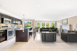 Nestled at the end of a quiet cul-de-sac, this executive residence offers over 6,100 sq. ft. of luxurious living across three levels. Designed with 8 bedrooms and 8 bathrooms, it features a grand double-height foyer, entertainment-sized living room, and a gourmet kitchen with granite counters, premium appliances, and a wok kitchen. The main level includes a guest ensuite, while upstairs offers four bedrooms including a spa-inspired primary suite with walk-in closet. The lower level, with separate entrance, provides 3 bedrooms, 3 bathrooms, a full kitchen, and recreation room—ideal for multi-generational living. Situated on a 13,800 sq. ft. lot with private terraces and a triple-car garage, this home is walking distance to top schools and shopping.