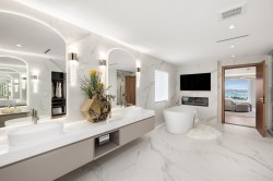 A Magnificent WORLD CLASS Luxury Residence situated on a prime .65 acre gated estate in the most prestigious BP, offering UNOBSTRUCTED OCEAN, CITY views. Built by Italian builder, generously apply Italian cabinets and wall paneling, sophisticated elegance & grandeur with contemporary design & beautiful landscape. 13,000 sqft gorgeous home offering 7 bdrms, 9 baths, entertainment-sized family & dining rooms, gourmet kitchen & generous wok kitchen, family & living room. Features include amazing 14 feet ceiling on lower floor, gym, wine bar and entertainment area beside enclosed amazing indoor pool open to the front patio, sauna & turbo spa, home theater, elevator, Smart Home System, A/C, heated driveway, 3-car garage, inner court yard,Water fountains, Gazebo on backyard.