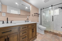 Welcome to this expansive 3,500 sq ft home on a 13,255 sq ft lot, offering stunning views, privacy, and flexibility. The home features a full renovation: interior and exterior repainting, new luxury hardwood flooring with soundproof subfloor, two additional bathrooms, new hot water tank, and new roof. The main level (approx. 1,800 sq ft) includes three generous bedrooms and the option to enjoy the entire home or create a separate suite for extended family, live-in support, or a mortgage helper. Expansive decks on both levels showcase panoramic vistas, while landscaped lawns and gardens add curb appeal. An attached garage and close proximity to schools, transit, shopping, golf, and recreation complete this exceptional opportunity.