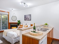 Welcome to Granite Court, perfectly located in Whistler Village North. This spacious ground-floor studio offers a warm and inviting retreat with an open layout, cozy gas fireplace, and private deck surrounded by trees. Step outside and enjoy a short walk to village shops, cafés, and restaurants, or catch the free shuttle to the gondolas. The Whistler Golf Course, Racket Club, and scenic Lost Lake trails are all just minutes away. With secure underground parking, in-suite laundry, and flexible Phase I zoning for personal use or nightly rentals, this is the ideal home base for your Whistler lifestyle.