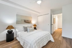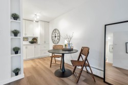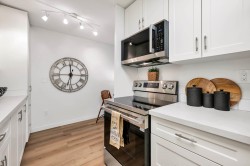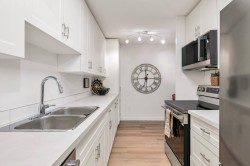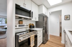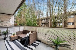 Stunning, spacious, completely renovated one bedroom condo. New kitchen, bathroom, flooring, lighting & paint. Located on main floor for one-level living with no stairs or elevator to deal with. Soak in the sun on huge south-facing patio. Incredible location to enjoy White Rock Beach lifestyle, easy access to transit and very walkable with shopping, restaurants, banking & more on your doorstep. Strong asset for the future: co-op title means you are part-owner of the company that owns the building & land. Super low monthly fees incl. heat, water, hot water & even your property taxes. Professionally managed & well cared for building has over $700,000 in contingency reserve fund. Unit comes w one parking spot & locker. 55+, no smoking, one cat allowed. Simply beautiful, move-in ready condo.