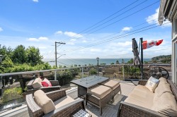 Welcome to your dream coastal retreat! This stunning multi-level home offers 3,264 sq. ft. of beautifully designed living space, where sweeping 180-degree ocean views steal the show. Thoughtfully updated in 2018 and 2012, the home blends modern elegance with timeless charm. The gourmet kitchen features maple cabinetry, granite countertops, and premium stainless steel appliances. A bright solarium extends off the kitchen, creating the perfect space to dine while enjoying breathtaking views. Three expansive sundecks provide endless opportunities to take in the Gulf Islands, Semiahmoo Bay, and White Rock Pier. Nearly every room offers a front-row seat to unforgettable sunsets. With a double garage and ample parking, this gem is just steps from the beach. PRICED BELOW TAX ASSESSED VALUE