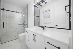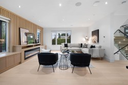 A striking brand-new luxury modern home on a quiet corner lot in one of White Rock’s most prestigious neighbourhoods. Situated on an expansive 8,188 sqft lot, this residence offers approximately 6,100 sqft of thoughtfully designed living space, ideal for multi-generational living. Featuring 8 bedrooms + Office and 8 bathrooms, a legal 2-bedroom basement suite with private access perfect for extended family or a mortgage helper. The chef’s kitchen is equipped with premium JennAir appliances, real wood cabinetry, quartz stone countertops, and a fully equipped spice kitchen. Open-concept living areas showcase engineered hardwood flooring, oversized windows, and custom millwork throughout. Complete with Control4 automation, security system, air conditioning, and hide-a-hose vacuum & much more!