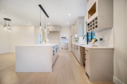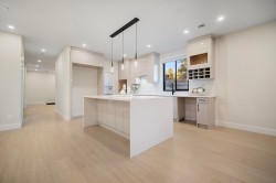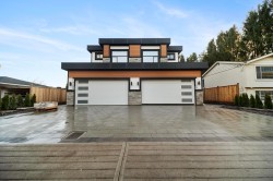 White Rock – Prime West Side Luxury 1/2 Duplexes. Each 3,503 sq. ft. on 4,545 sq. ft. southern exposed lots. High-end construction, extensive millwork, detailed finish. Main floor 10' ceiling, parlor, great room, chef's size kitchen & wok kitchen leads to a 19' x 12' covered sundeck with gas fireplace. Upper level offers 4 bedrooms, 3 full baths including beautiful primary suite with private sundeck. Walk-out basement features 2 games rooms, plumbed bar, 2 bedroom, 2 full baths. Ideal for extended family. Wide plank floors all levels, Right Choice Kitchen Cabinetry & Built-ins, quartz tops, rod iron staircase, heat pump, generator, video security and much more. Double garages, wide driveway, street parking. Steps to Bayridge, Semiahmoo schools, White Rock beach. Open Sat, Jan. 31, 2-3:30